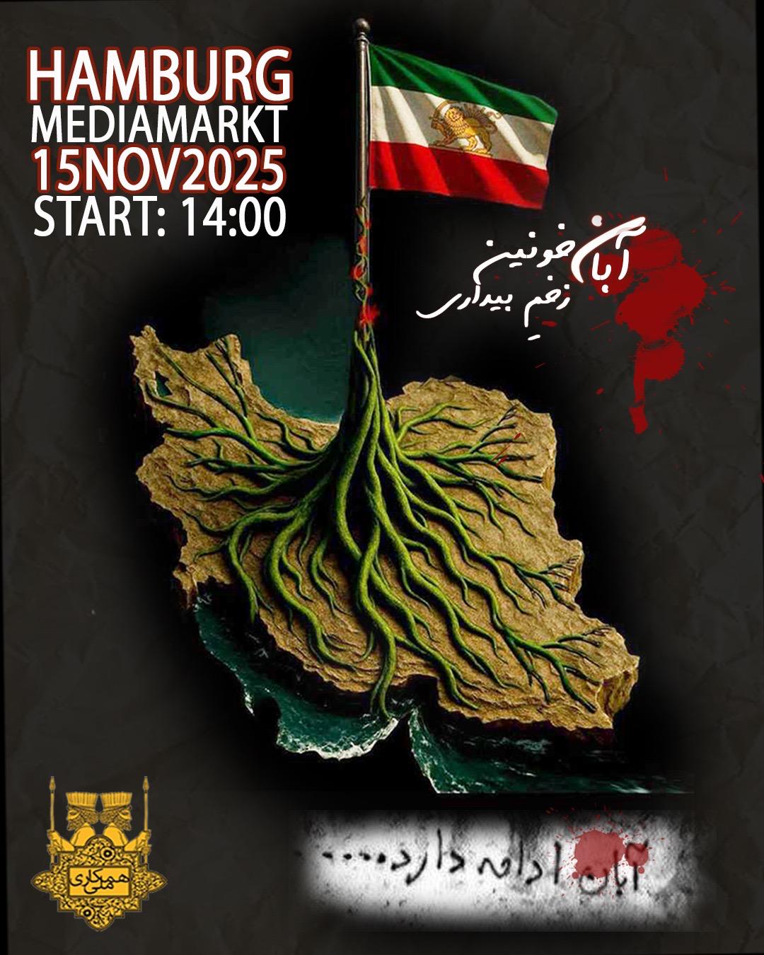 در آبان ۹۸، خیابانهای ایران رنگ خون گرفت. مردم، آزادی را فریاد زدند و پاسخشان گلوله بود؛ اما آن خون، بذر بیداری شد از دلِ درد، نسلی برخاست که سکوت را شکست. ما در هامبورگ گرد میآییم تا بگوییم: آبان زنده است، عدالت و آزادی خواست ماست، و ایران، تا هست، میجنگد برای آزادی. آبان...