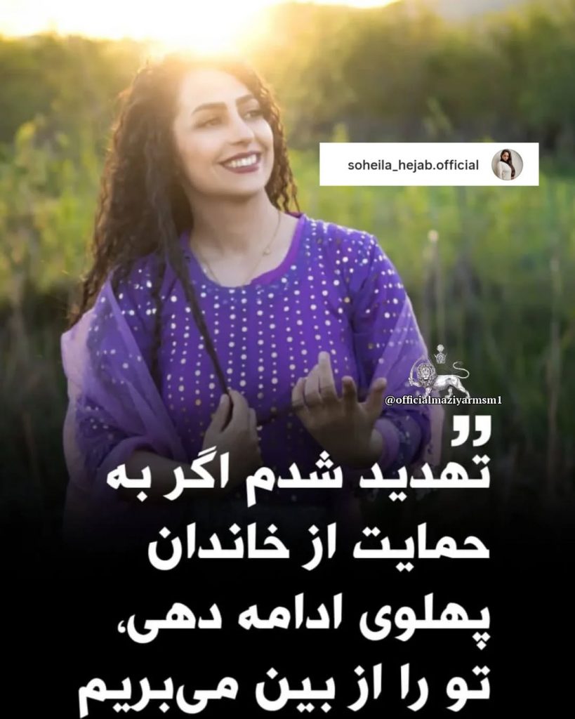 خانم سهیلا حجاب، وکیل و فعال مشروطه خواه:”به اطلاع می‌رسانم که طی روزهای اخیر توسط برخی افراد وابسته به استقلال طلبان و عامیانه بگویم جریانات تجزیه‌طلب در منطقه کردستان مورد تهدید جانی قرار گرفته‌ام. تهدیدها به‌صراحت شامل جملاتی بوده از قبیل اینکه «اگر به حمایت از خاندان پهلوی ادامه دهی، سرت را بیخ تا بیخ می‌بُریم».